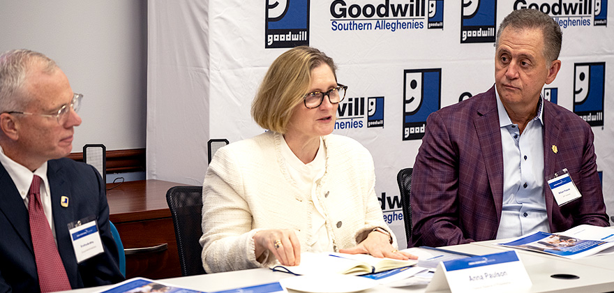 On October 15, leaders from across the community gathered at Goodwill of the Southern Alleghenies in Johnstown, PA, for a roundtable discussion with Anna Paulson, president and CEO of the Federal Reserve Bank of Philadelphia. The conversation focused on the economy, local jobs, and how community partners are leveraging shared strategies for workforce development in the region.