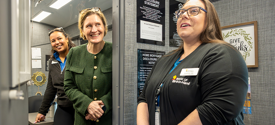 Philadelphia Fed President and CEO Anna Paulson explored the answer during a visit to Bank of Bird-in-Hand in Lancaster County, Pennsylvania. There, she stepped inside the bank’s "Gelt Bus" — a mobile branch on wheels that brings financial services to the Amish and Mennonite communities across five counties — to see firsthand how the institution is bridging the gap in rural banking access.