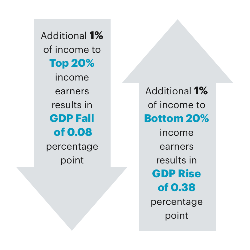 Research shows that inequality strains economic growth. A global study found that when an additional 1 percent of income goes to the top 20 percent of income earners, GDP falls. But when the same gains are made by the bottom 20 percent, GDP rises. Fostering economic mobility is good for economic growth.*