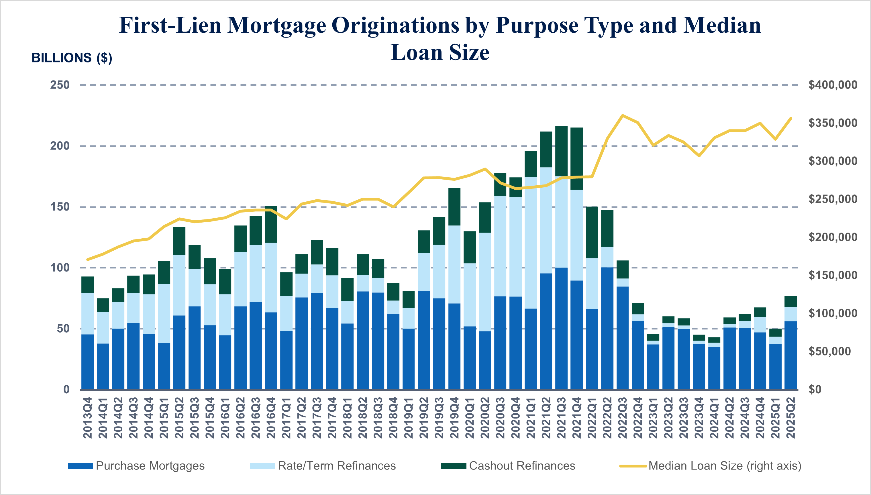 Nearly three-quarters of new mortgage balances were for purchase loans, which increased 10 percent year over year. In fact, the second quarter of 2025 boasted the greatest purchase mortgage dollars originated since the fourth quarter of 2022. Growth in purchase mortgage balances is driven in part by larger loan amounts, rather than simply a greater number of new accounts. In the broader context of the U.S. housing market, existing home sales in April fell 1.1 percent year over year, while median sale prices increased 1.4 percent, as reported by Redfin. Purchase mortgage volumes remain low compared with normal, pre-pandemic levels, when mortgage interest rates were 200 to 300 basis points lower.